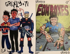 It's Grixly Time! Start out 2026 with this pair of 24-page digest-size issues, each packed cover to cover with comics. While both issues are dominated by Tales from the Longboxes Universe™, there are also several side trips into Family life and more – inclulding a cameo by Connor Willumsen, a meditation on a Alasdair Roberts song as well as thoughts on Kanye West (aka Ye) that qualifies as reception theory.. #72 features a front cover by Colin Sims – who also is responsible for pages 3 + 4 – a one-pager scripted by Alex Rudolph, and an eye-popping, full-color centerfold by Victor Cayro that's suitable-for-framing (but be careful with those staples when pulling it out!)