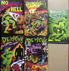 Here's a set of all four of Hyena Hell's Demons comics from Silver Sprocket: No Romance In Hell; To Earth and Back; Bloodlust; Rise and Grind – PLUS her self-published collection of sketchbook drawings, Truth Must Have Heard Me From Afar. All for one special low price!